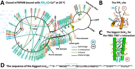 - Yin, Y.; Zhang, F.; Feng, S.; Butay, K.J.; Borgnia, M.J.; Im, W.; Lee, S.-Y. Activation mechanism of the mouse cold-sensing TRPM8 channel by cooling agonist and PIP2. Science 2022, 378, eadd1268. [Google Scholar] [CrossRef] [PubMed]