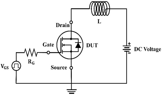 Figure 6 [70] shows the test circuit for unclamped inductive switching (UIS), used to evaluate the avalanche reliability of the SiC MOSFET. Even though avalanche occurrences are not unique to SiC-based systems, they are nonetheless very important in determining the design’s overall dependability, especially considering how common power electronics are in today’s world [71].