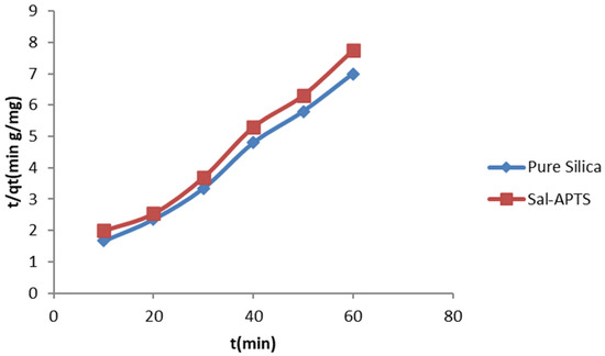 Pseudo second-order kinetic data of Salicylaldehyde-APTS modified.
