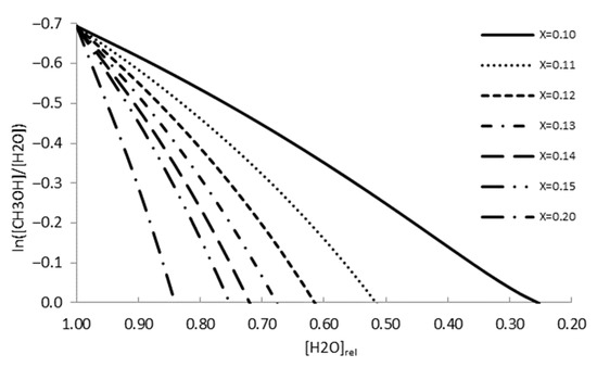 As expected, the reaction constant in the methanol formation shows the same reduction ratio as for the methanol concentration, with an identical value of 0.513 and a standard deviation of 0.008, proving the accuracy in the value determination.
