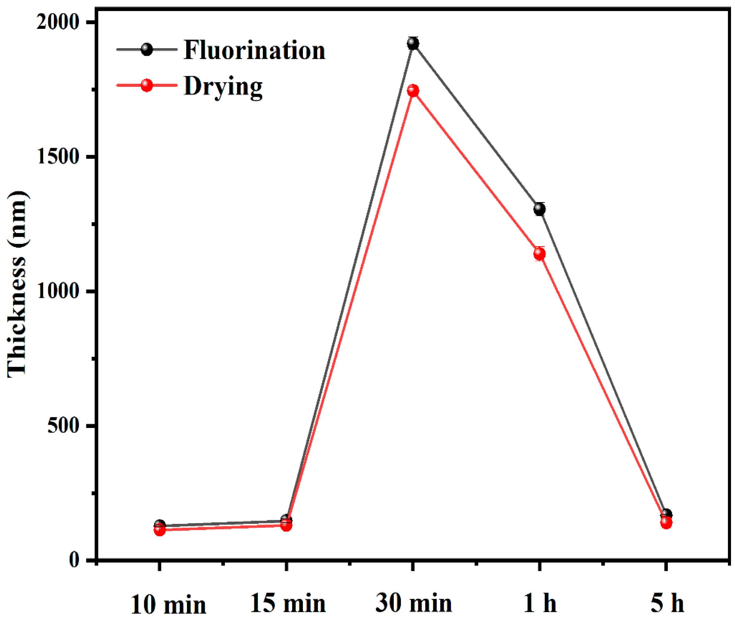 3.3. Effects of Fluorination and Drying on the Surface Properties and Morphology