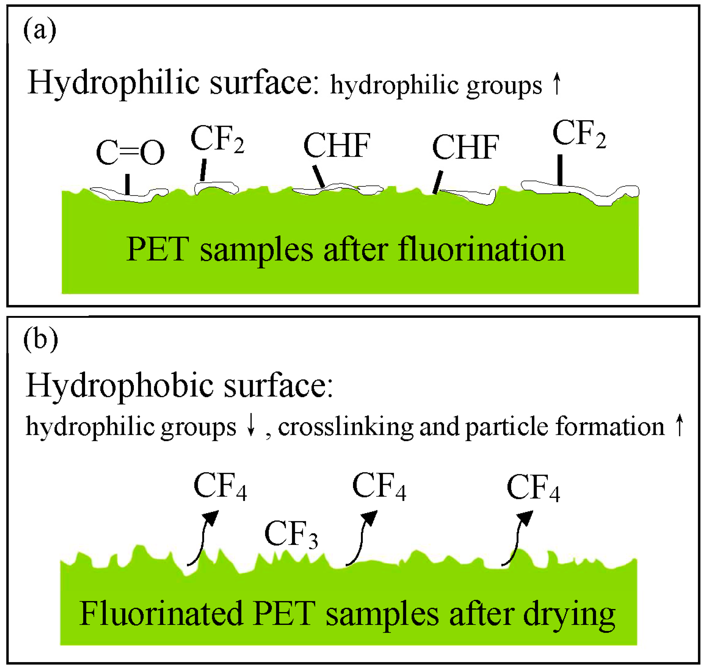 Controlled Hydrophilic–Hydrophobic Transition of PET Films via Fluorination and Drying