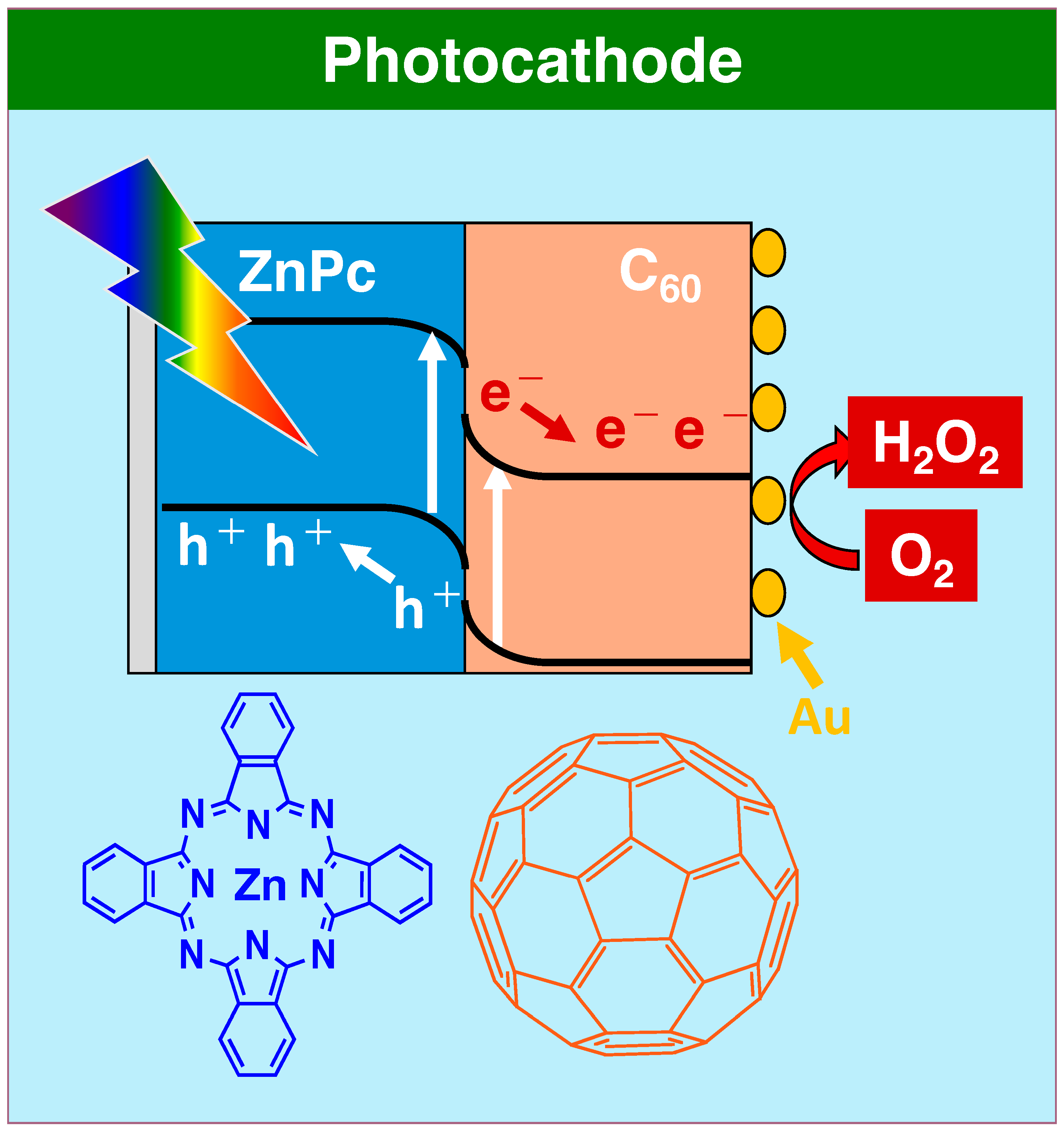 Scheme 1. Illustration of H2O2 formation occurring at ZnPc/C60-Au photocathode.