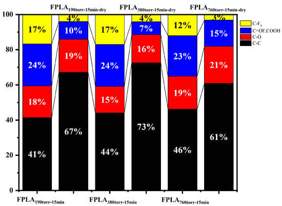 To confirm the drying effect, some fluorinated samples were placed in a vacuum for 48 h at 70 °C. The samples were named as FPLA380torr-10min-dry, FPLA380torr-15min-dry, FPLA380torr-30min-dry, FPLA380torr-60min-dry, FPLA190torr-15min-dry and FPLA760torr-15min-dry at this study.