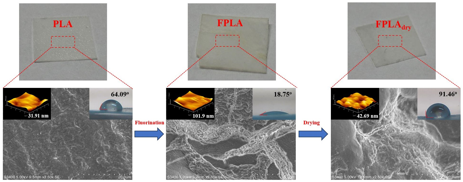 Tuning Hydrophilic–Hydrophobic Properties of PLA Films Through Surface Fluorination and Drying