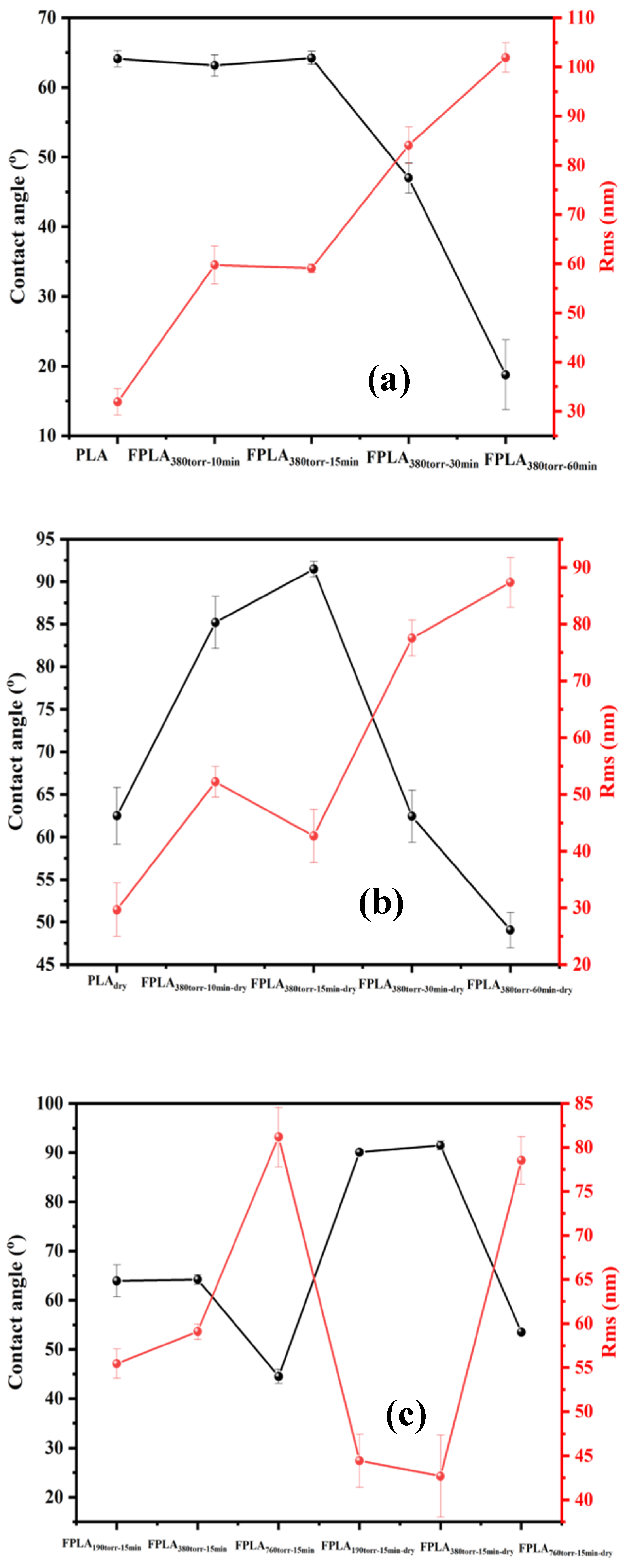 - Chaiwong, C.; Rachtanapun, P.; Wongchaiya, P.; Auras, R.; Boonyawan, D. Effect of plasma treatment on hydrophobicity and barrier property of polylactic acid. Surf. Coat. Technol. 2010, 204, 2933–2939. [Google Scholar] [CrossRef]