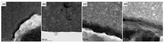 STEM (DF-I) micrographs of C@M-SiOx: (a) C@M1-SiOx, (b) C@M2-SiOx, (c) C@M3-SiOx, (d) C@M4-SiOx.