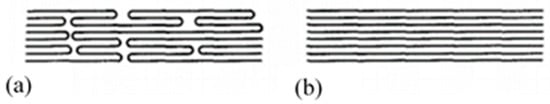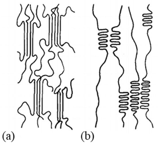 Sketch of moderately (a) and completely extended molecular chains (b), respectively without and with molecular drawing (reprinted with permission from ref. []. 2021 Roiron.).