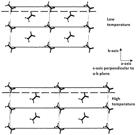The impact of the duration of the lateral stress was studied [], and it is presented in Figure 13c. The longer the duration, the more the enthalpy is reduced, up to 2 min for which the enthalpy stabilizes but then the second peak tends to disappear. The transformation into the hexagonal phase then seems no longer allowed. The widening of the peak suggests a decrease in the size of the original crystals.