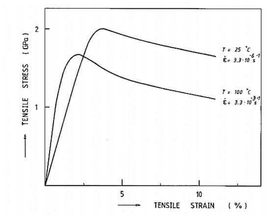 However, their low melting temperature compared to other reinforcements may also be an obstacle to their use for certain applications. Due to its properties, UHMWPE reinforcement is today used in limited fields such as ballistics (bullet-proof vest []), medicine (prosthetic joints []) for protective equipment (helmets []), or towing lines []. These fibers have not been integrated into the primary structures in the automotive and aeronautic industry. To widen their use in these fields of activity, it would be mandatory to know and control their thermomechanical behavior under different load paths (loads at different speeds, fatigue, creep, load fluctuations coupled with temperature fluctuations) and the field of knowledge of this behavior is by no means exhaustive today.