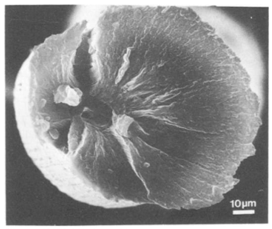 - The transformation of the spherulites into fibrils, which he attributes to the breaking of the small crystal blocks that are present in the lamella packs, the reorientation, and rearrangement into stacks. This discontinuous transformation of the spherulitic into fiber structure is done by micro-necking. Indeed, the formation of bundles of microfibrils is encouraged by the cracking of the folded chain lamellae and by the presence of many micro-necks at the crack;