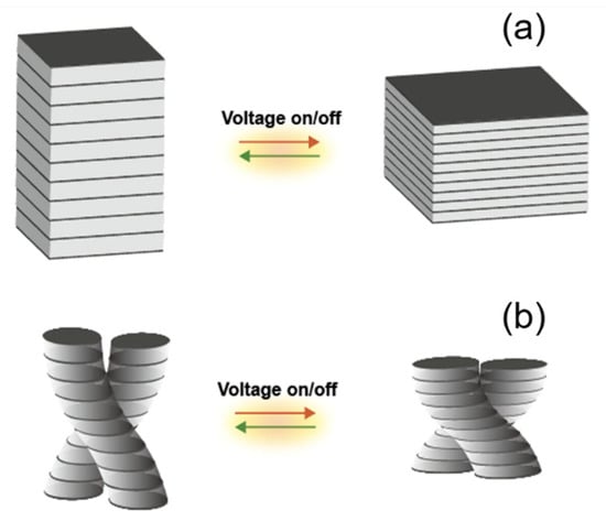 - White, T.J.; Broer, D.J. Programmable and adaptive mechanics with liquid crystal polymer networks and elastomers. Nat. Mater. 2015, 14, 1087–1098. [Google Scholar] [CrossRef] [PubMed]