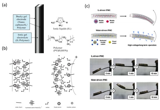 - Asaka, K.; Mukai, K.; Sugino, T.; Kiyohara, K. Ionic electroactive polymer actuators based on nano-carbon electrodes. Polym. Int. 2013, 62, 1263–1270. [Google Scholar] [CrossRef]