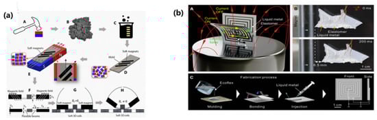 - Guo, R.; Sheng, L.; Gong, H.; Liu, J. Liquid metal spiral coil enabled soft electromagnetic actuator. Sci. China Technol. Sci. 2018, 61, 516–521. [Google Scholar] [CrossRef]