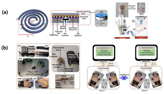 - Yu, X.; Xie, Z.; Yu, Y.; Lee, J.; Vazquez-Guardado, A.; Luan, H.; Ruban, J.; Ning, X.; Akhtar, A.; Li, D.; et al. Skin-integrated wireless haptic interfaces for virtual and augmented reality. Nature 2019, 575, 473–479. [Google Scholar] [CrossRef]