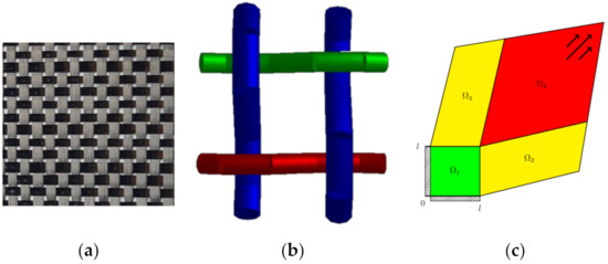 Figure 6c), and an in-plane sliding between the fibers is bounded by a contact function, which is related to the friction between yarns. It is expressed in the powers of the distance between two weft or two warp yarns. Both partial clamp and loose contact result in a domain split with different behaviors in each of the four parts schematically shown in