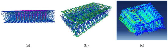 25], a simulation of the compressional elastic, relaxation and permeability properties of spacer fabrics was proposed. The detailed structural modeling helps to better understand the energy-driven processes in warp knitted spacer fabrics and the basic underlying mechanisms. Such simulations can be used for function-adapted product developments and replace the previous extremely time-consuming and costly experimental technology.