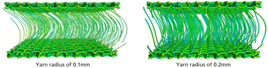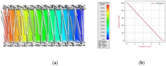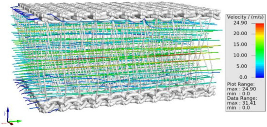 Figure 13). Afterwards, the fabric was compressed with TexMath, and the Stokes flow in the compressed structure was simulated, again, assuming it to be rigid for this simulation.