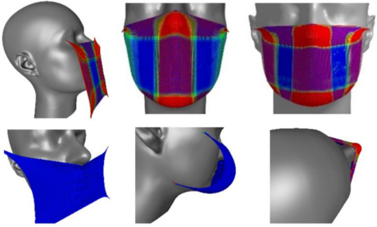 In a second example, the process of putting on a medical mask produced from knitted fabric is simulated. The simulation results are presented in