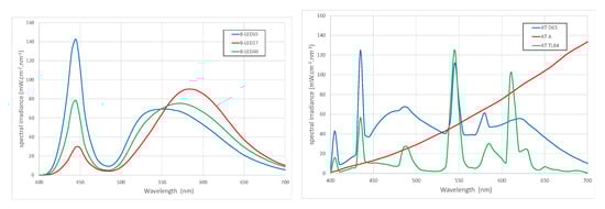 In practice, calibrated light booths are recommended for assessing objects’ color differences []. Lighting booths that use older filtered technology are more expensive to maintain. Light booths that use newer fluorescent technology require much less maintenance and are more affordable; nevertheless, at present, fluorescent lamps are gradually being replaced by LED technology, so it is important to compare both technologies. To ensure correct color quality and compliance with user specifications, they only need to be recalibrated and replaced with new light. The regular and appropriate use of a light booth improves the workflow, shortens the cycle time, and shows a positive return on investment. The LED retro kits available today allow the replacement of previously used fluorescent tubes, but the important question arises as to how these fit together with the earlier usability of such a light booth.