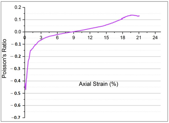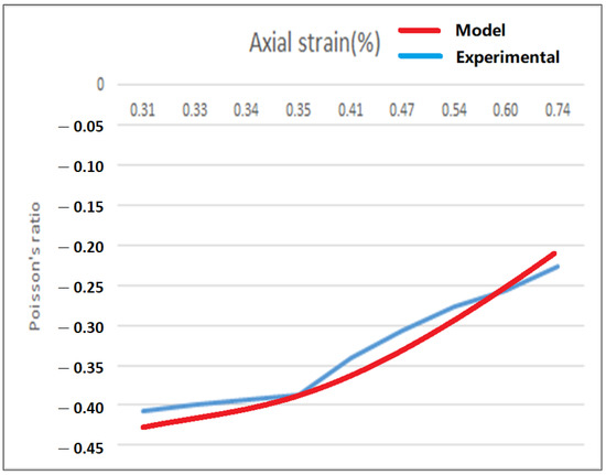 Experimental results of Poisson’s ratio at different axial strain.