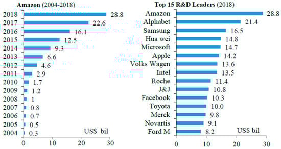 Amazon’s conspicuous jump to become the world’s top R&D leader—R&D investment. Sources: [64,65].