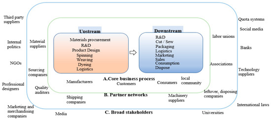 The textile and apparel (fashion) industry has social, cultural, and economic significance in many societies. Nevertheless, the word fashion has different meanings ranging from the way of doing things to textiles and apparel. Among others, Hansen’s [1] study found that fashion implies discourses representing the developments in arts, social structure, and culture. In Western society, it is highly associated with “style”, “dress”, or “clothes” [2,3]. As these features make fashion a meaningful phenomenon, in this study, the fashion industry corresponds to fashion-driven textiles and apparel as well as other fashion-related products. It includes a wide range of business networks ranging from raw materials production, design, manufacturing, and retail [4,5]. These advancements improve fashion, and apparel accelerates this development [6].