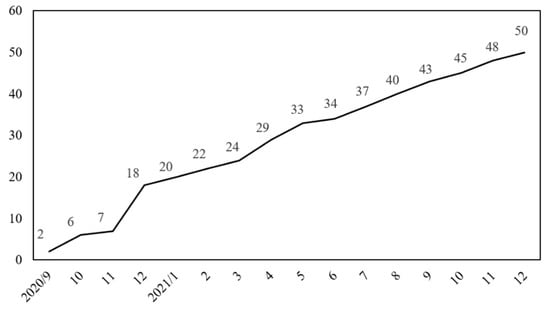 Amazon’s business model is based on customer-centric R&D-driven developments. Company-wide experimentation and R&D have been key to Amazon growing its empire. This is achieved by continuous interaction with users based on an architecture of participation, and an advanced assimilation capacity based on rapidly increasing R&D investment. For instance, Amazon’s R&D investments increased from USD 16 billion in 2016 to USD 56 billion in 2021 [61]. The significant increase in Amazon’s R&D investment in the digital economy suggests the possibility of a structural change in the concept of R&D, similar to its output. Amazon’s concept of R&D refers to technology and content. This indicates thoughtful insights into the R&D model in the digital economy [16,62,63]. The substantial increase in R&D enabled Amazon to become the world’s top R&D firm in 2017, with a skyrocketing increase in its market capitalization, making it nearly the world’s biggest company, as shown in Figure 5 and Figure 6.