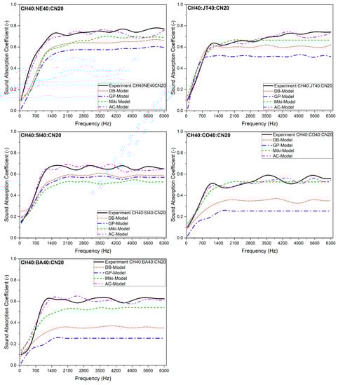 Other researchers, like Miki, Mechel, and Pompoli, have developed a variety of coefficients for the DB model [,,].