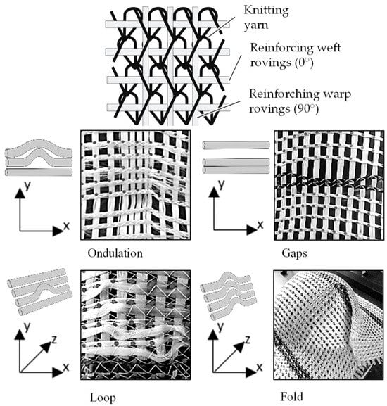 - Krieger, H.; Gries, T.; Stapleton, S.E. Design of Tailored Non-Crimp Fabrics Based on Stitching Geometry. Appl. Compos. Mater. 2018, 25, 113–127. [Google Scholar] [CrossRef]