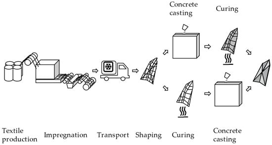 - Scheurer, M.; Kalthoff, M.; Matschei, T.; Raupach, M.; Gries, T. Analysis of Curing and Mechanical Performance of Pre-Impregnated Carbon Fibers Cured within Concrete. Textiles 2022, 2, 657–672. [Google Scholar] [CrossRef]