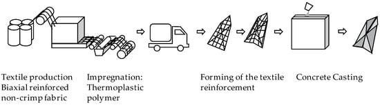 - Cherif, C.; Diestel, O.; Engler, T.; Hufnagl, E.; Weiland, S. Textilbewehrter Beton. In Textile Materials for Lightweight Constructions: Technologies—Methods—Materials—Properties; Cherif, C., Ed.; Springer: Berlin/Heidelberg, Germany, 2016; pp. 666–687. [Google Scholar]