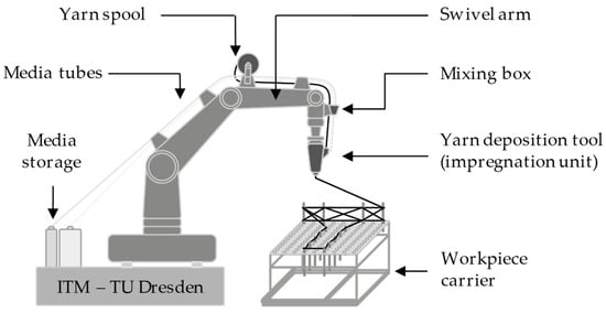 - Friese, D.; Mersch, J.; Hahn, L.; Cherif, C. (Eds.) Development of a Yarn Guiding and Impregnation Technology for Robot-Asissted Fiber Manufacturing of 3d Textile Reinforcement Structures; Zenodo: Honolulu, HI, USA, 2023. [Google Scholar]
