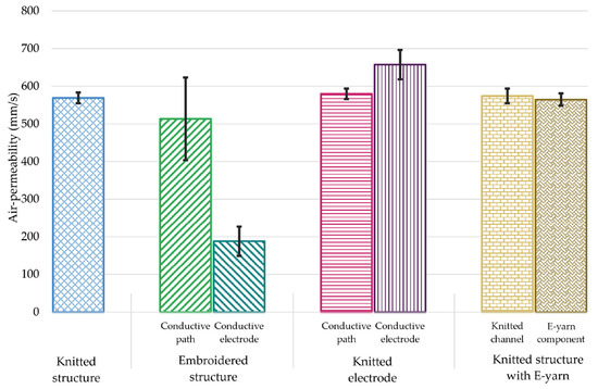 Air permeability of textiles and electronic textiles. The figure presents evaluated sub-groups.