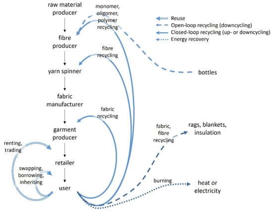 - Harmsen, P.; Scheffer, M.; Bos, H. Textiles for circular fashion: The logic behind recycling options. Sustainability 2021, 13, 9714. [Google Scholar] [CrossRef]