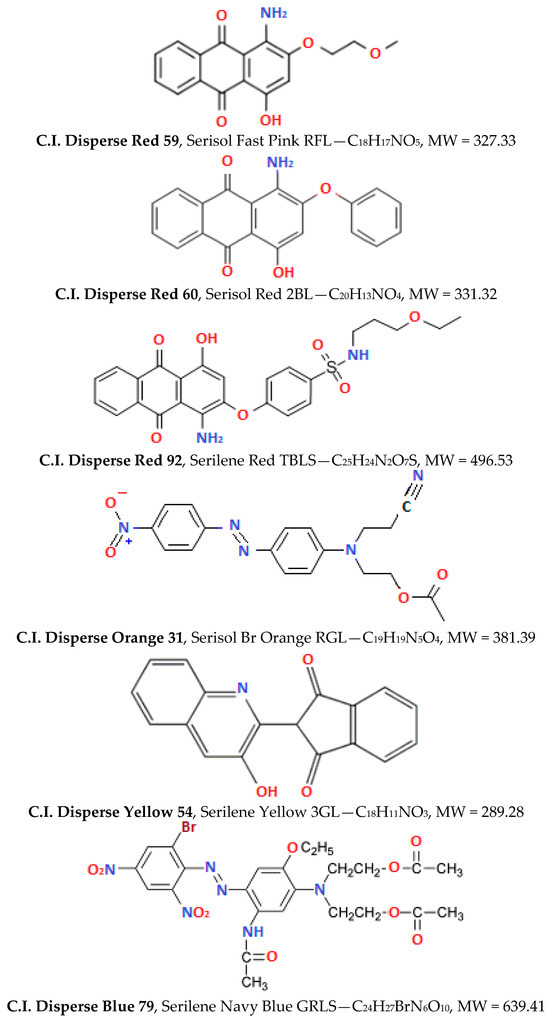 Chemical structures, formulae and MW of the disperse dyes applied [19].