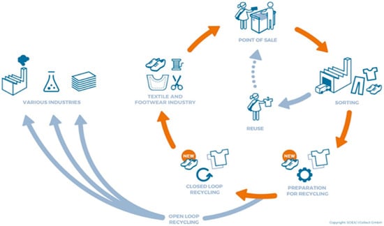 - Payne, A. Open-and closed-loop recycling of textile and apparel products. In Handbook of Life Cycle Assessment (LCA) of Textiles and Clothing; Woodhead Publishing: Sawston, UK, 2015; pp. 103–123. [Google Scholar]