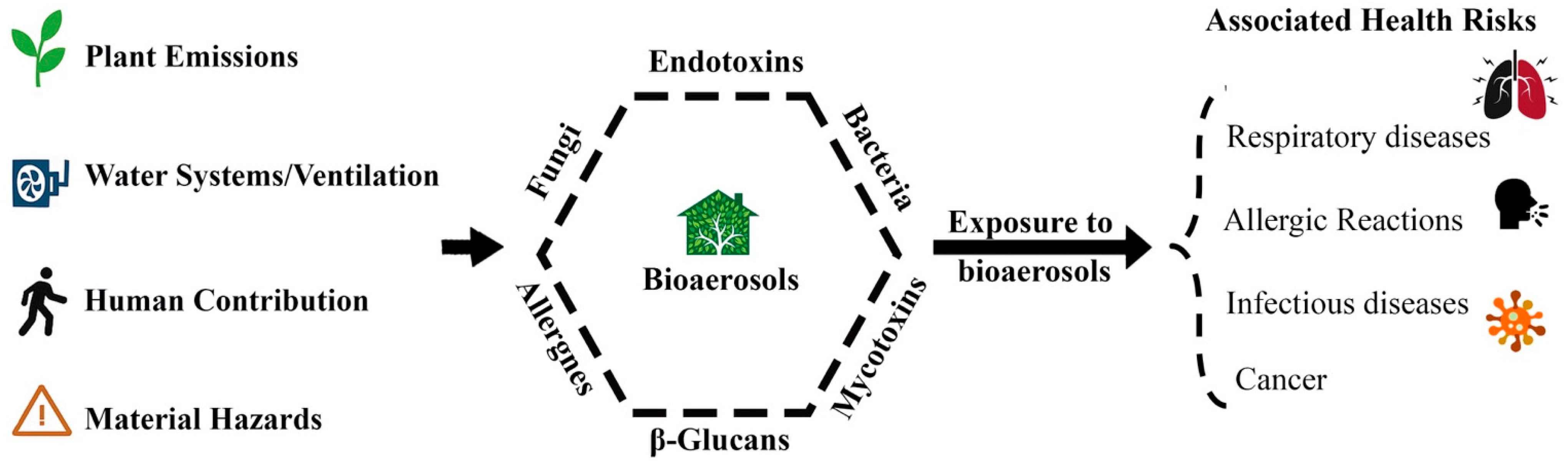 | Fungi | Common fungi like Aspergillus and Penicillium thrive in moist environments and are prevalent in indoor and outdoor air. Seasonal variations affect their concentrations. | Air conditioning units, water-damaged materials | Respiratory symptoms, allergic reactions |