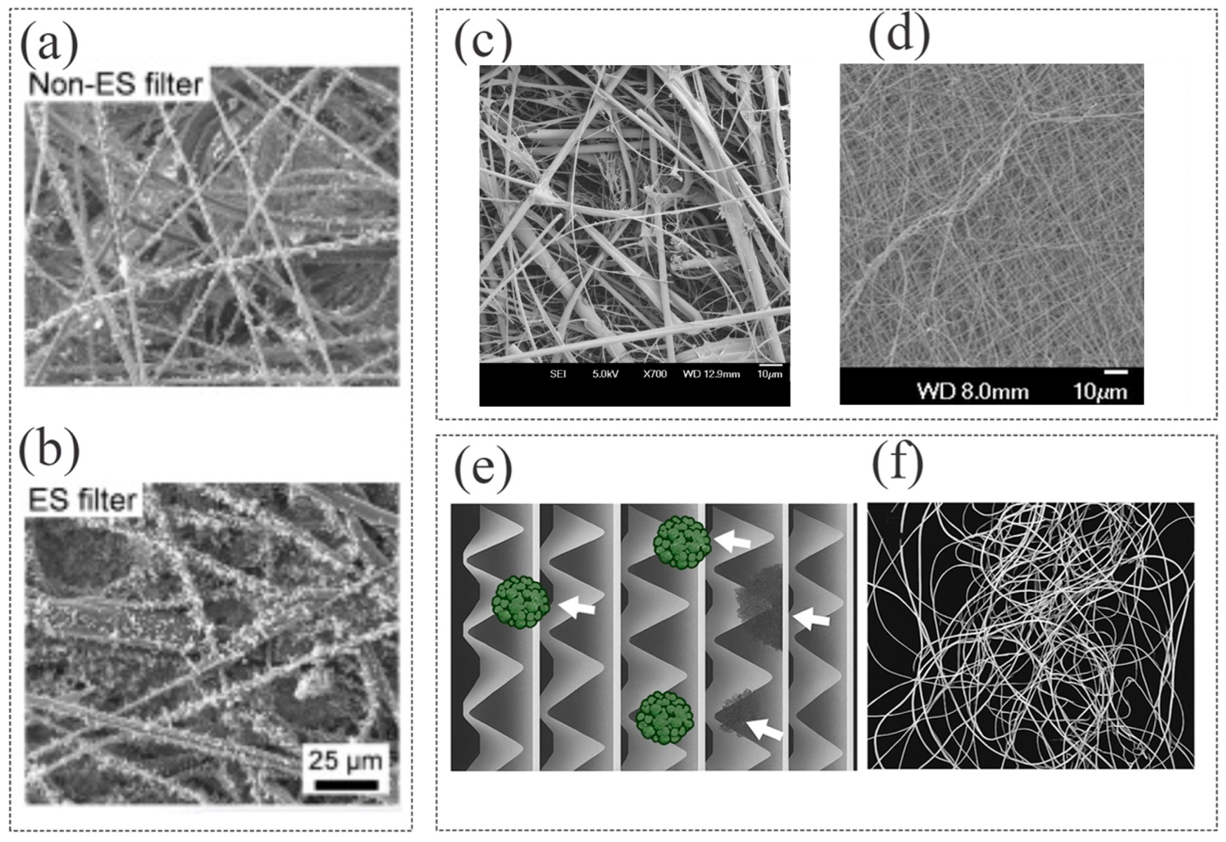 - Zhu, M.; Han, J.; Wang, F.; Shao, W.; Xiong, R.; Zhang, Q.; Pan, H.; Yang, Y.; Samal, S.K.; Zhang, F. Electrospun nanofibers membranes for effective air filtration. Macromol. Mater. Eng. 2017, 302, 1600353. [Google Scholar] [CrossRef]