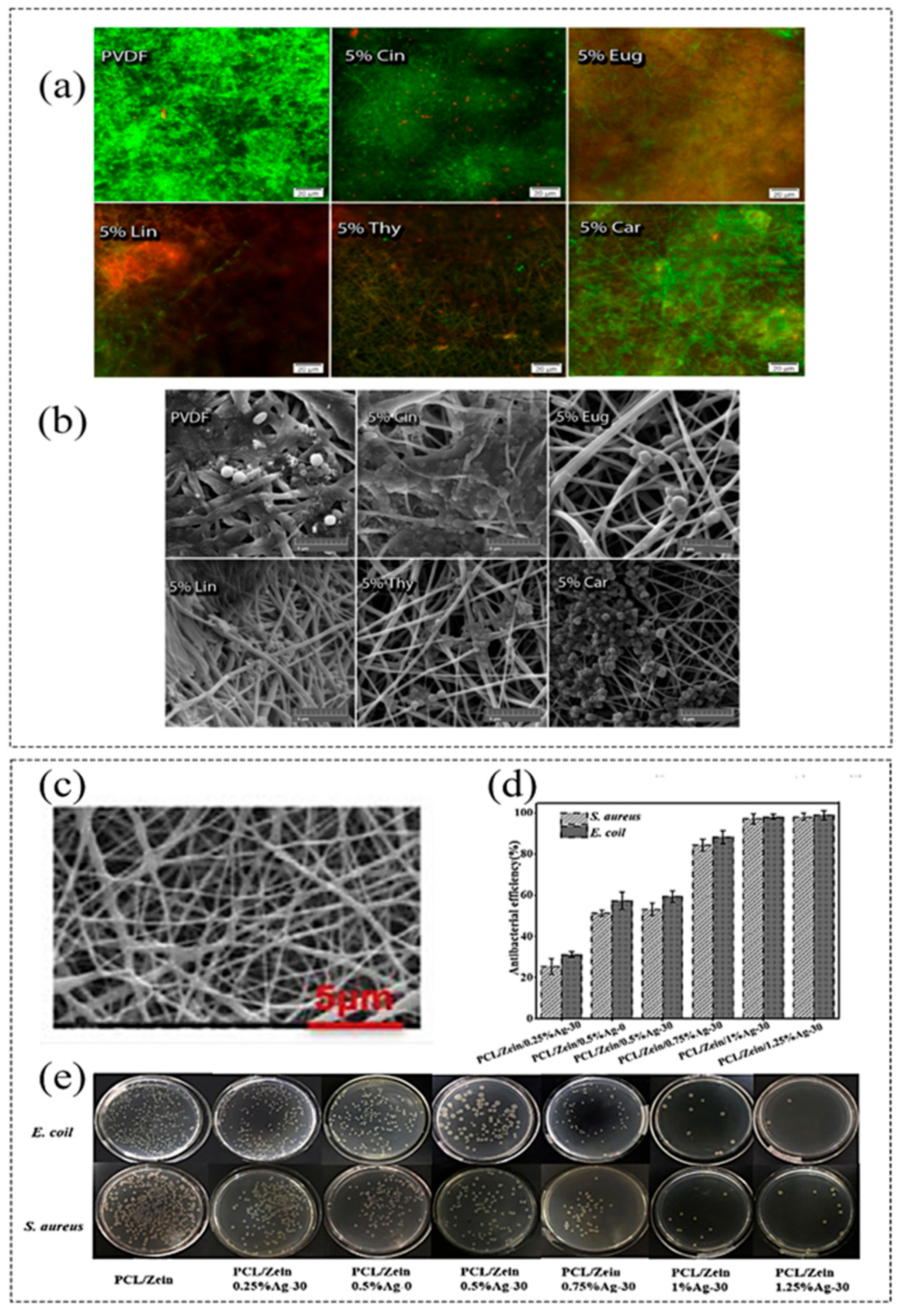 - Rather, A.H.; Wani, T.U.; Khan, R.S.; Pant, B.; Park, M.; Sheikh, F.A. Prospects of polymeric nanofibers loaded with essential oils for biomedical and food-packaging applications. Int. J. Mol. Sci. 2021, 22, 4017. [Google Scholar] [CrossRef]