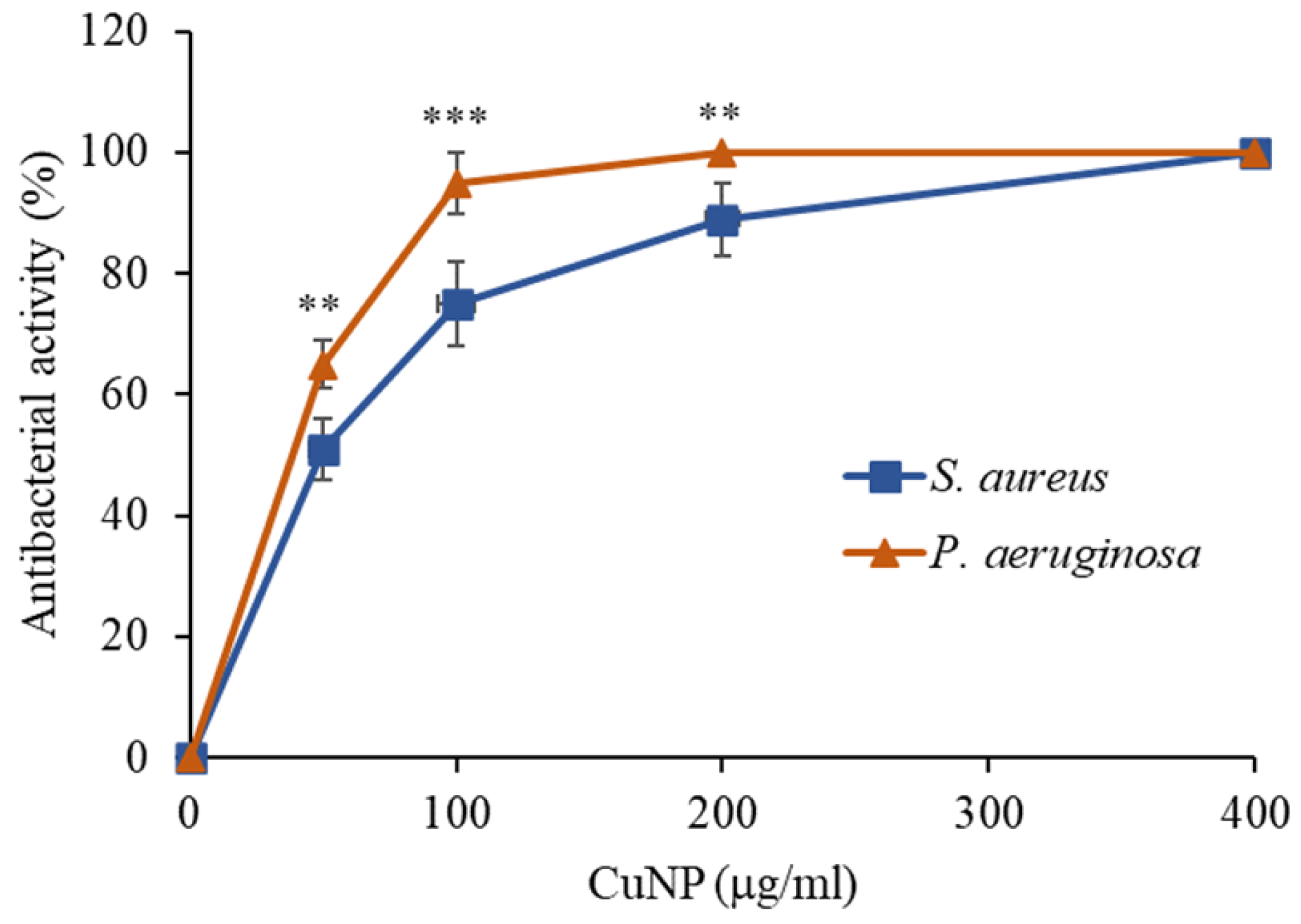 3.1. Antimicrobial Characterization of Copper Nanoparticles