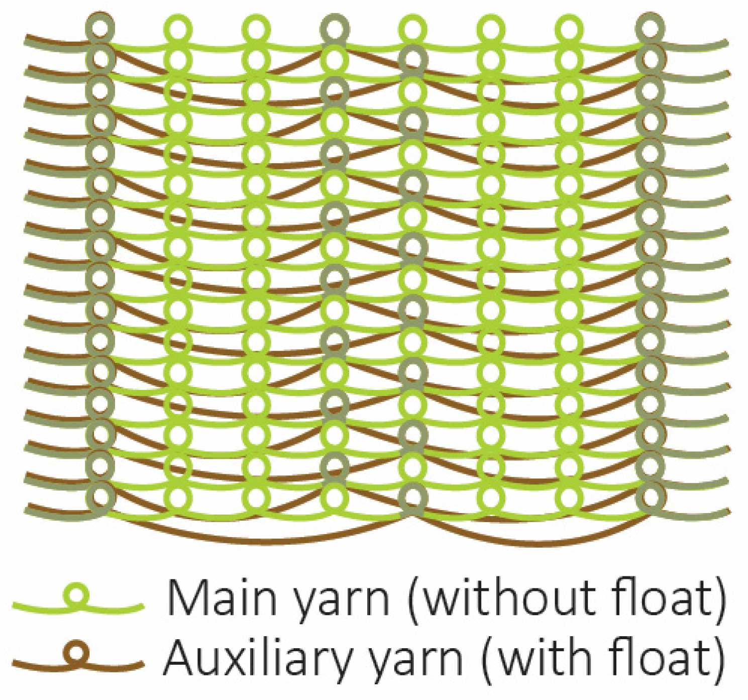 | Auxiliary yarn (with float) | Yarn A | Yarn B | Yarn D |