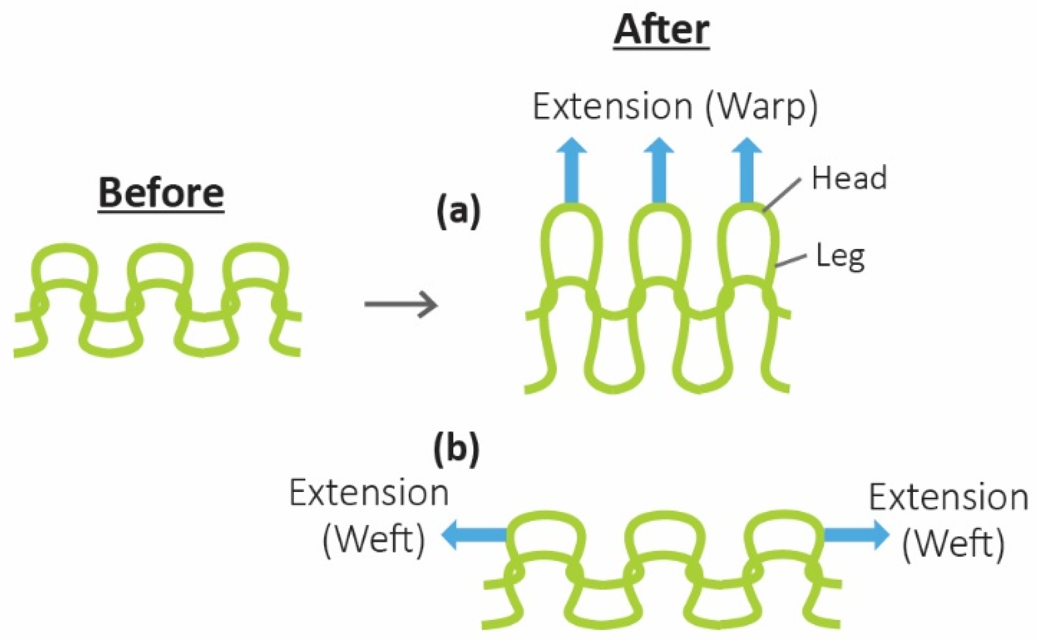 - Zadekhast, R.; Asayesh, A. The Effect of Fabric Structure on the Compression Behavior of Rib Weft Knitted Fabrics. Fibers Polym. 2021, 22, 2878–2884. [Google Scholar] [CrossRef]