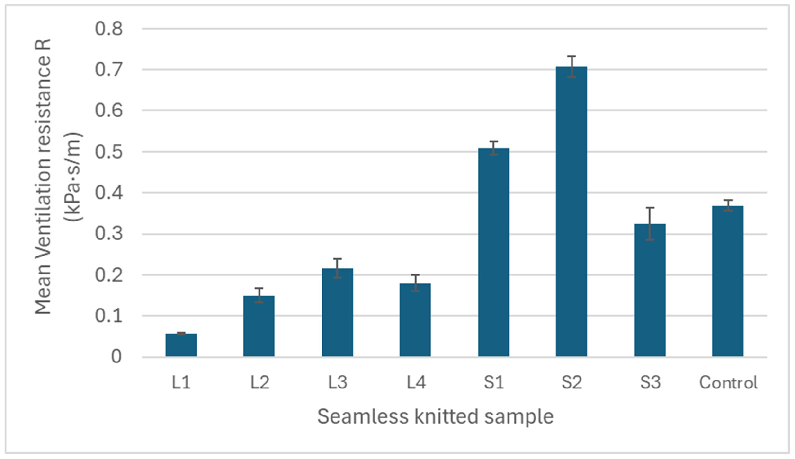 | Air permeability | Ventilation resistance | Air permeability tester (KES-F8-AP1, KATO Tech Co., Ltd., Kyoto, Japan) | ASTM D737-18 Standard Test Method for Air Permeability of Textile Fabrics; ASTM International: West Conshohocken, PA, USA, 2018. |