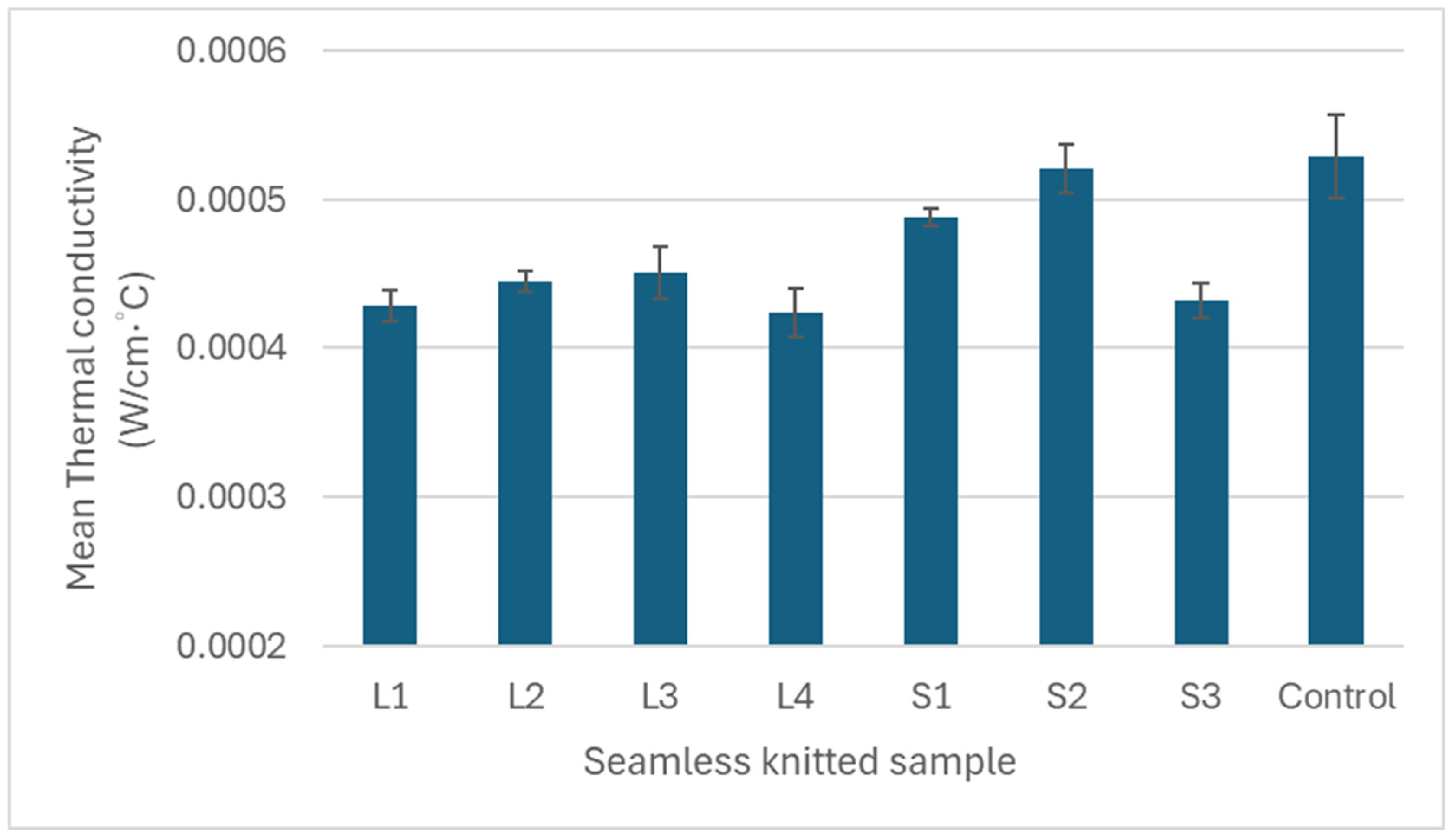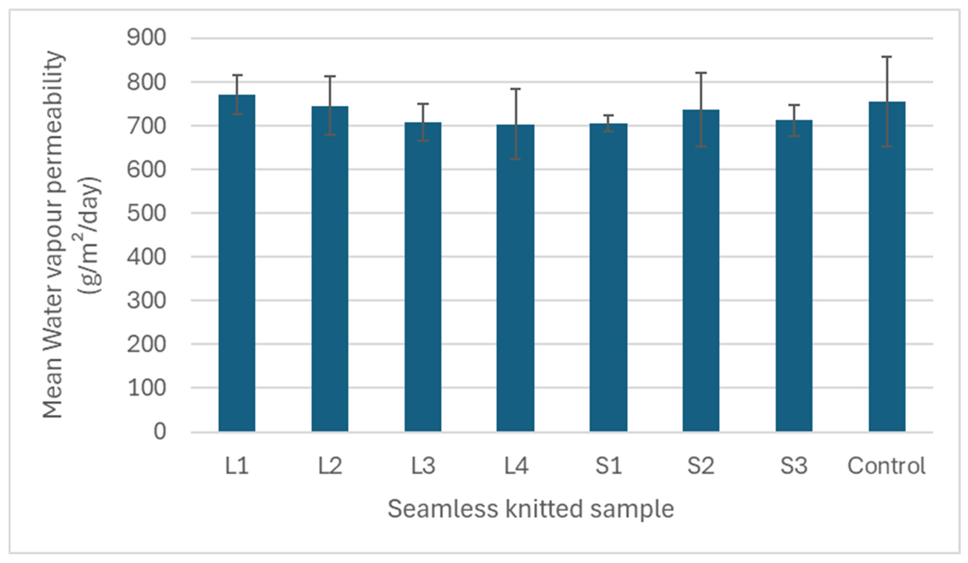 3.3. Air Permeability, Thermal Conductivity and Water Vapour Permeability
