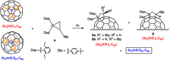 Selective carbosilylation of Sc3N@Ih-C80 using 4.