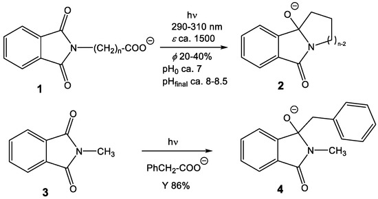- Mumtaz, S.; Robertson, M.J.; Oelgemöller, M. Recent advances in photodecarboxylations involving phthalimides. Aust. J. Chem. 2018, 71, 634–648. [Google Scholar] [CrossRef]