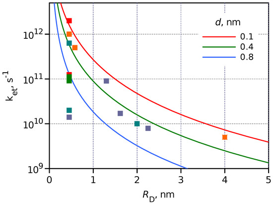 It can be noted that there are reports on much faster PET in DA systems with QDs, e.g., [41]. However, for this comparison, we selected only the systems with (i) a fullerene acceptor and (ii) for which the PET in a one-to-one complex was reported or can be calculated.