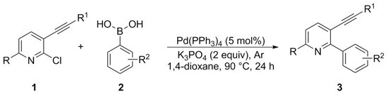 2.2.2. General Procedure for the Synthesis of 2-aryl-3-(organylethynyl)pyridines 3a–k