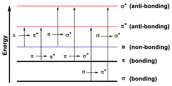 Most common electronic transitions (n, π, σ).